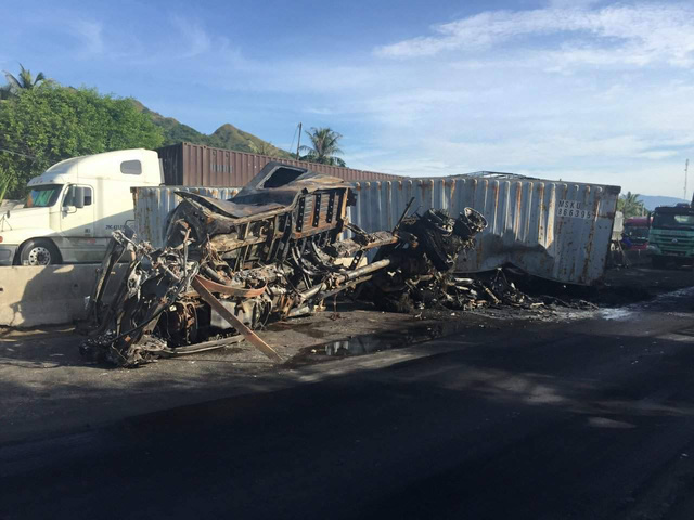 Khánh hòa: hai ô tô bốc cháy dữ dội sau vụ tai nạn liên hoàn trên quốc lộ