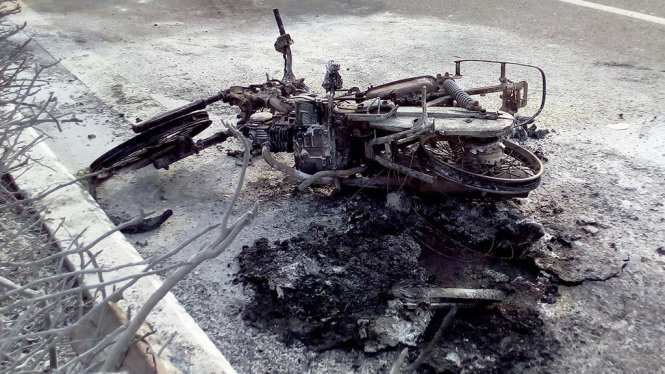 Xe máy bị thiêu rụi hoàn toàn - Ảnh: HẢI HIẾU